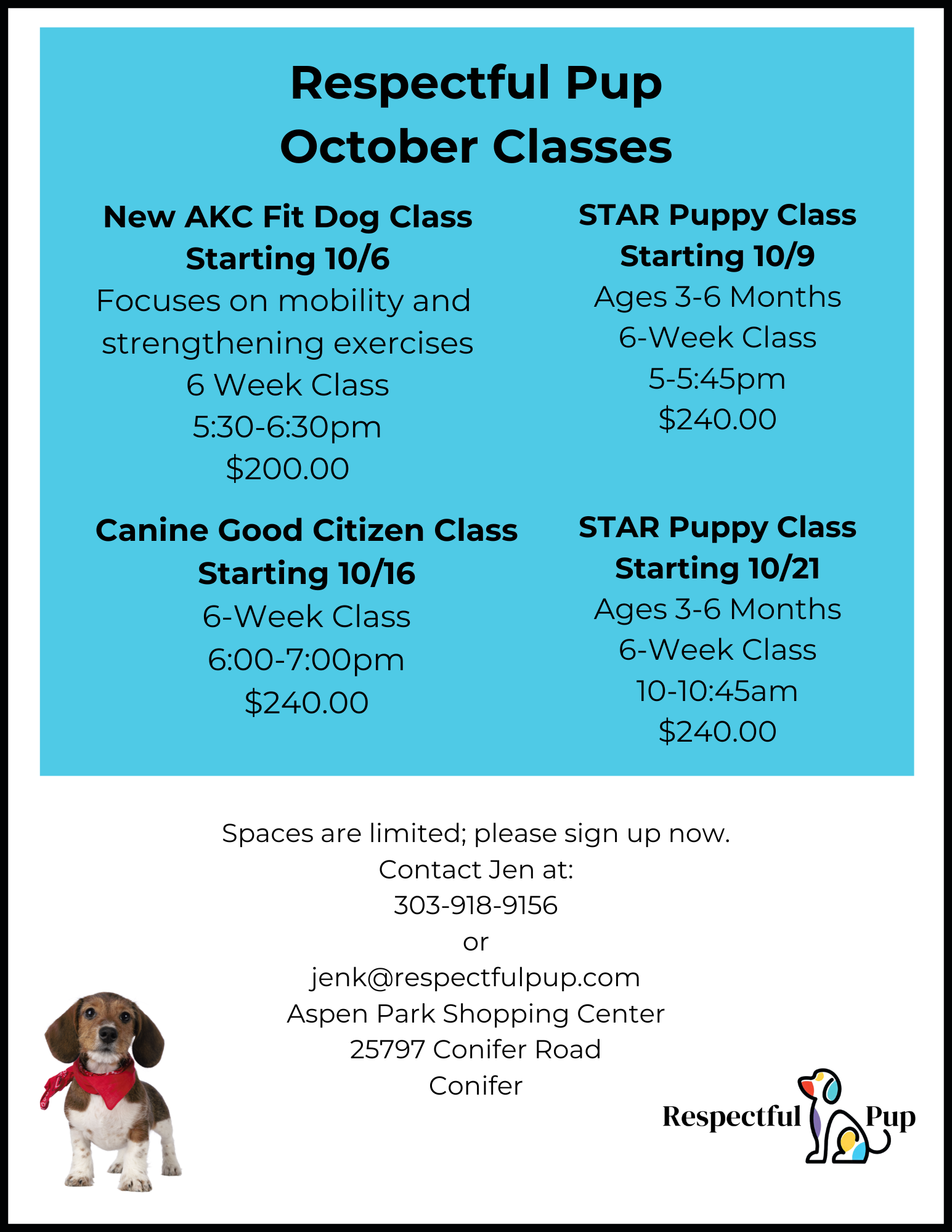 STAR Puppy Class starting 10/21 at 10:00am - 6 Week Class - $240
